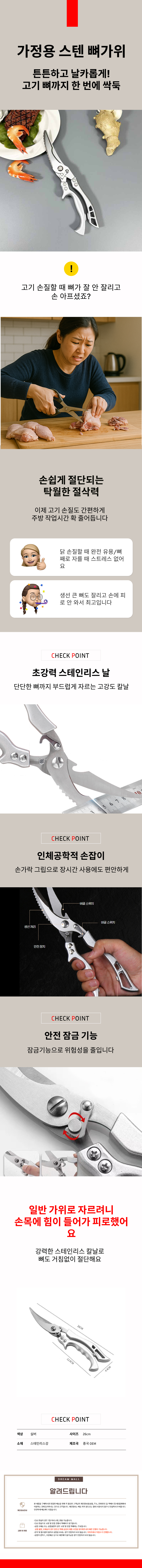 고급 스텐 주방가위 다용도 식당용 강력 고기가위