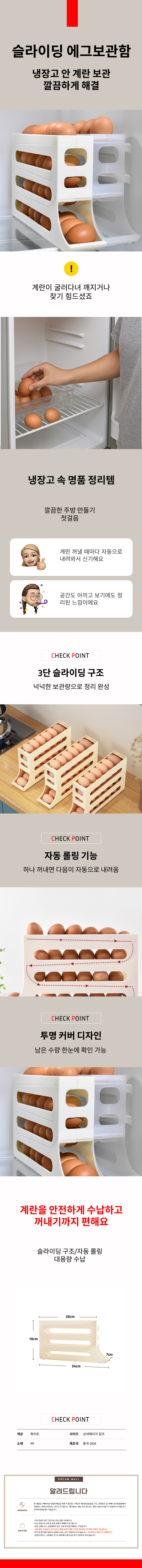 주방 계란보관함 에그홀더 자동롤링 달걀보관 3단