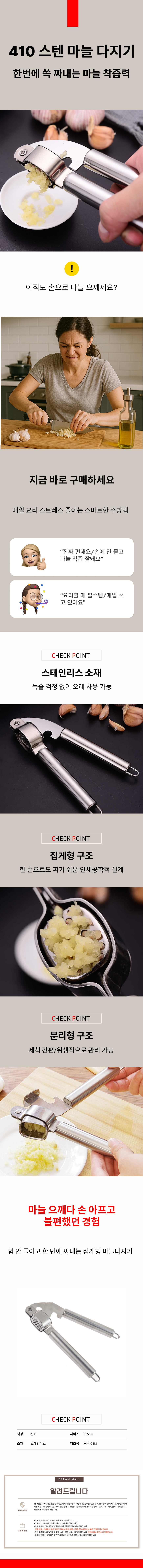마늘 짜개 으깨기 수동 프레스형 주방 도구 스텐