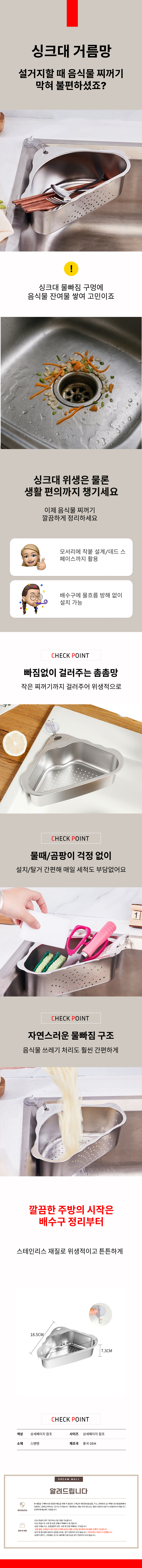 싱크대 모서리 주방 세척 거름망 수세미홀더 스텐