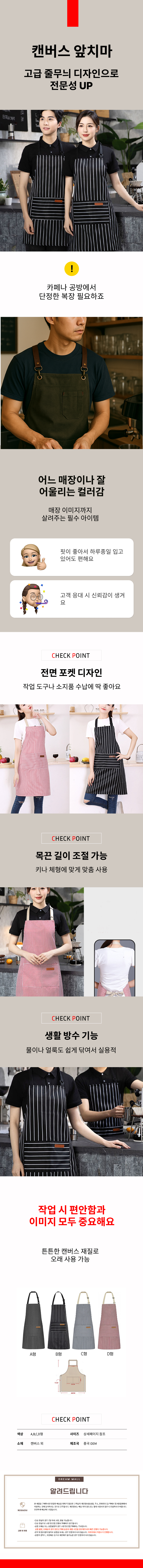 고급 캔버스 앞치마 공방 카페 바리스타 플로리스트용