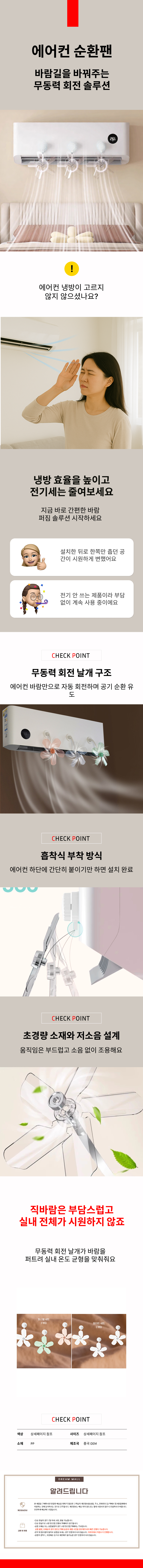 회전 에어컨 공기순환기 무동력 절약형 바람팬