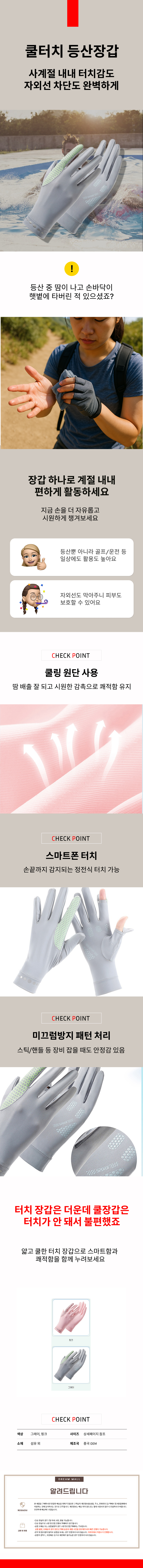 조깅 라이딩 운동용 터치 쿨장갑 사계절