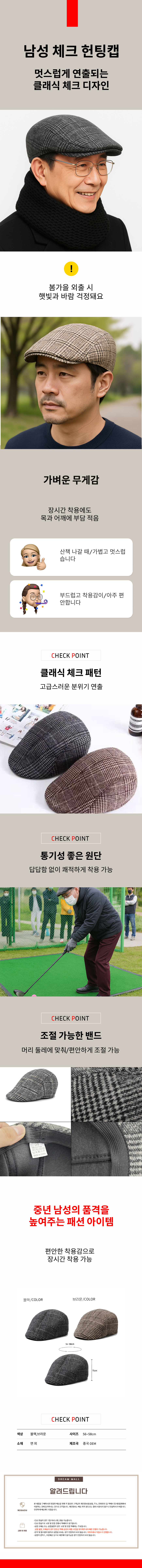 봄가을 겨울 신사 헌팅캡 남자 울 체크 중년모자