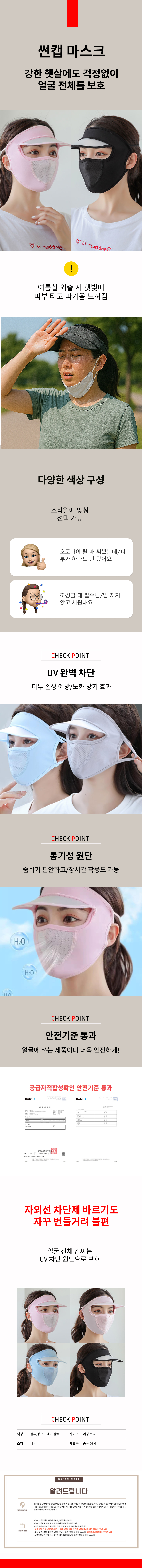 여성 여름 썬캡 마스크 UV차단 등산 자전거 골프 모자