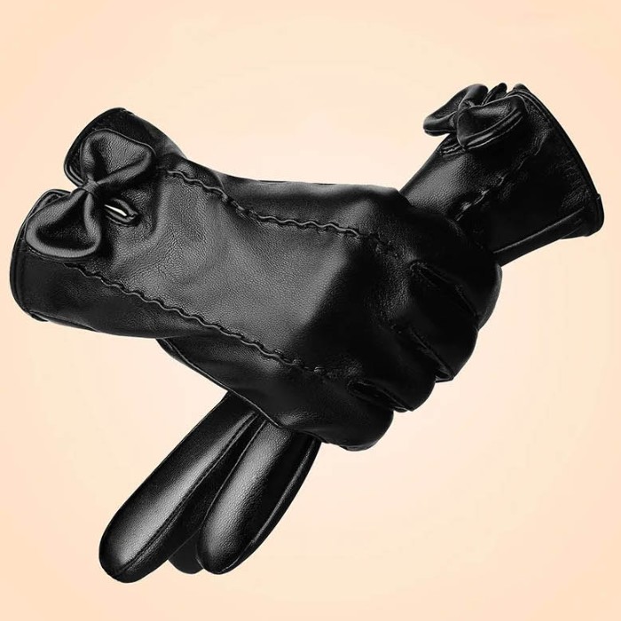 우아한 리본 장식 가죽 장갑 겨울 스마트폰 터치 글러브