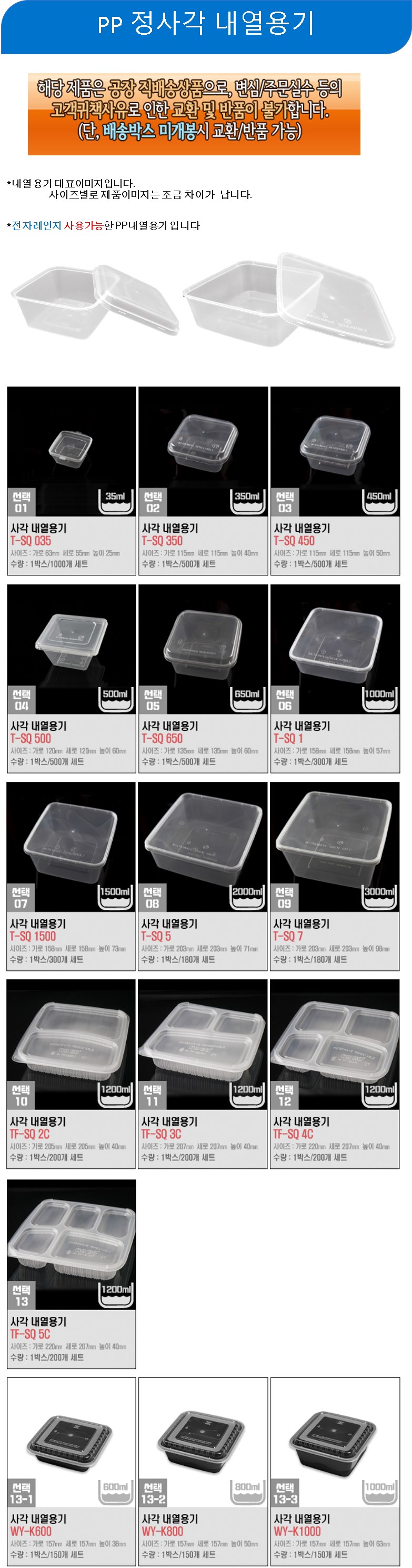 PP 내열용기 13-1번 정사각 1칸 검정 157x157x38mm 150개