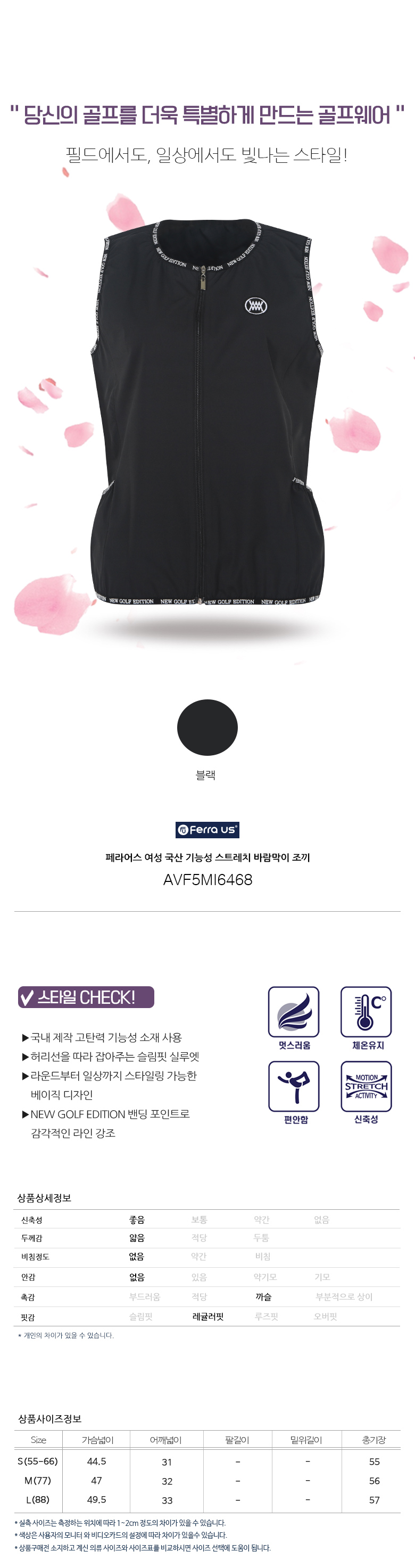 페라어스 여성 국산 기능성 스트레치 바람막이 조끼 AVF5MI6468