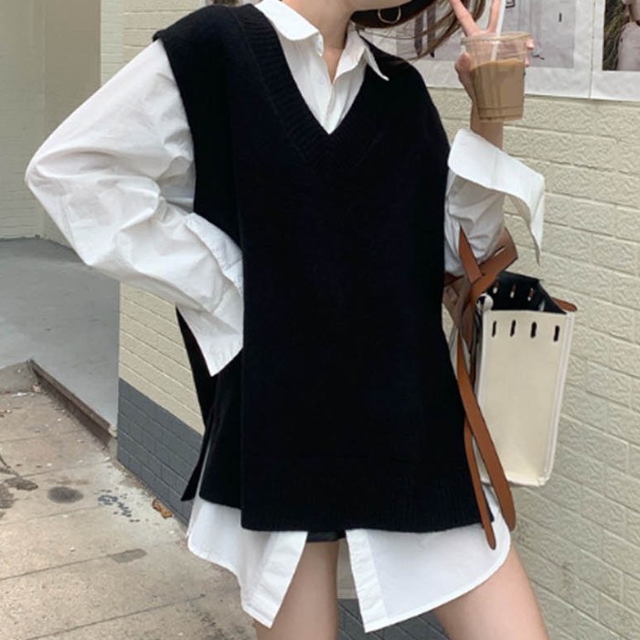 레이어드 조끼 감각적인 니트 베스트 브이넥 간절기
