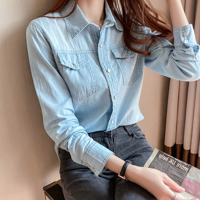 데님 남방 단정한 여성 카라 셔츠 내츄럴한 레이어드룩