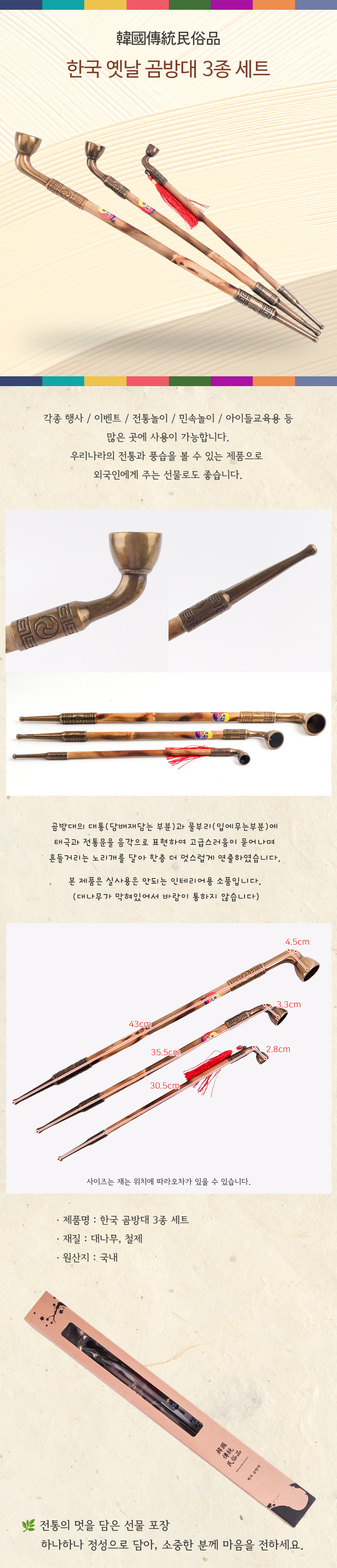 한국 옛날곰방대 3종세트 담뱃대 소품 선물