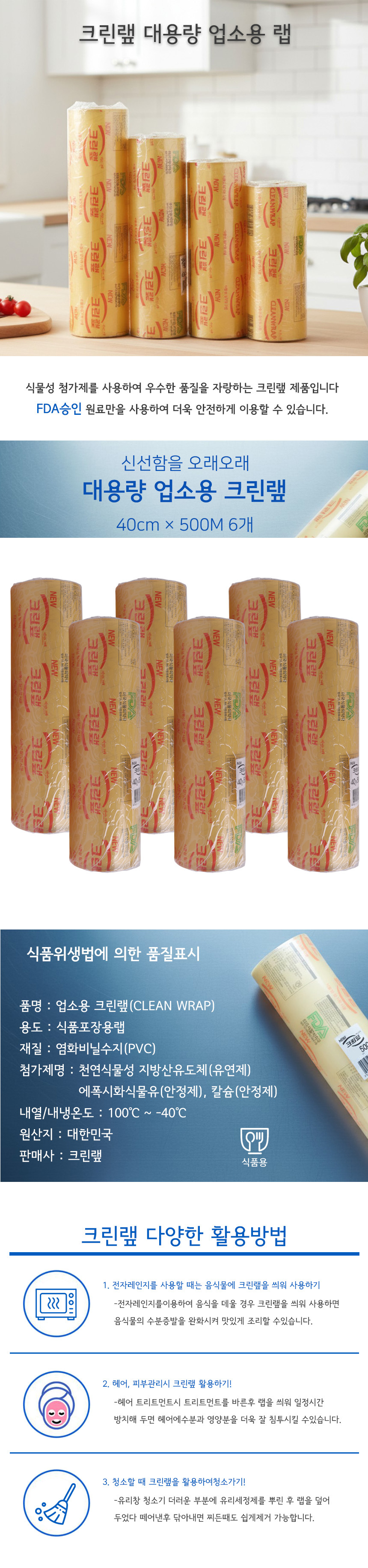 크린랲 대용량 업소용 위생랩 40cm × 500M 6개