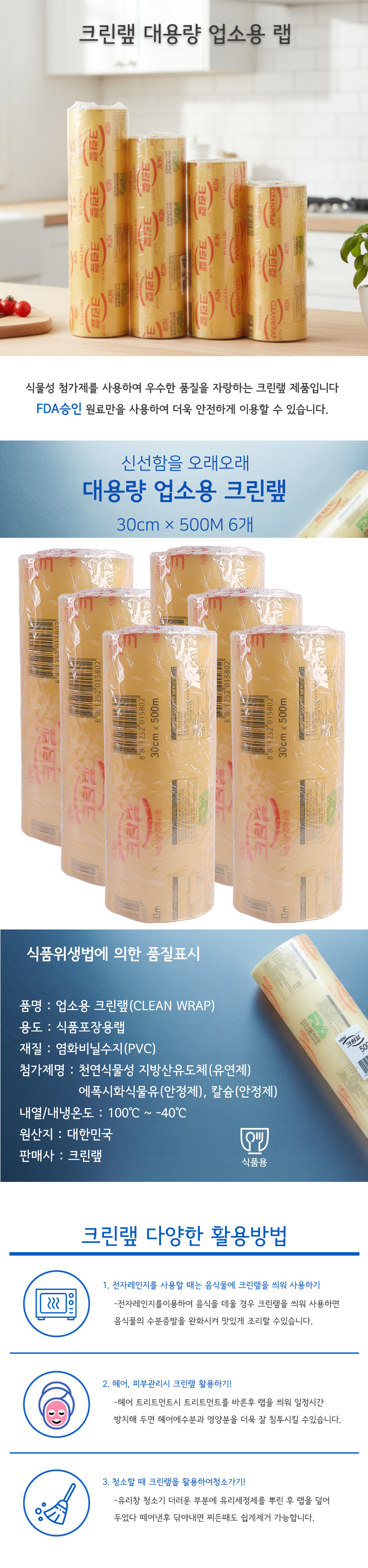 크린랲 대용량 업소용 위생랩 30cm × 500M 6개