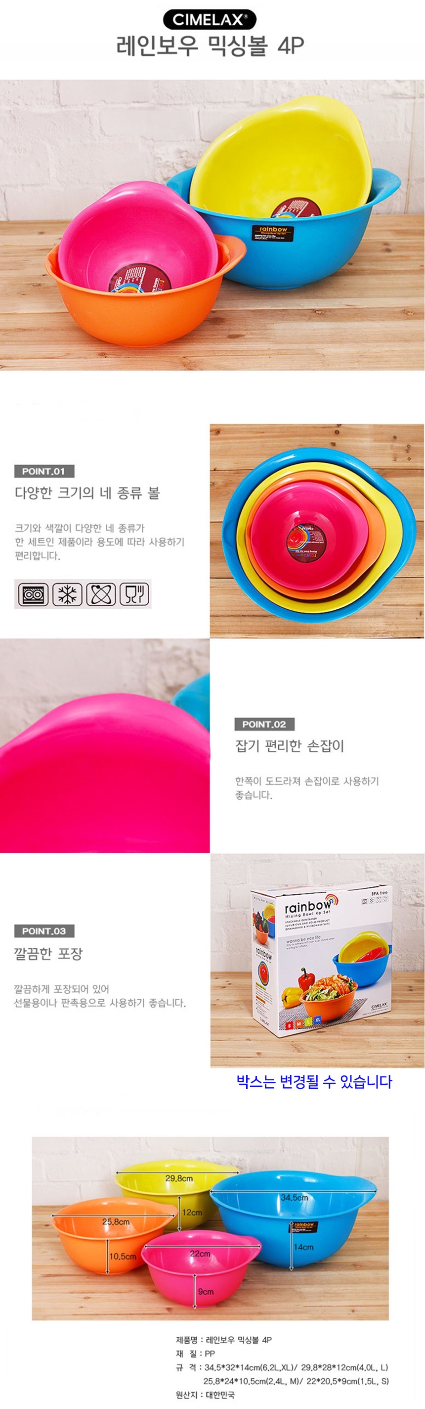 무지개 샐러드볼 4p 믹싱볼 주방용품 조리도구