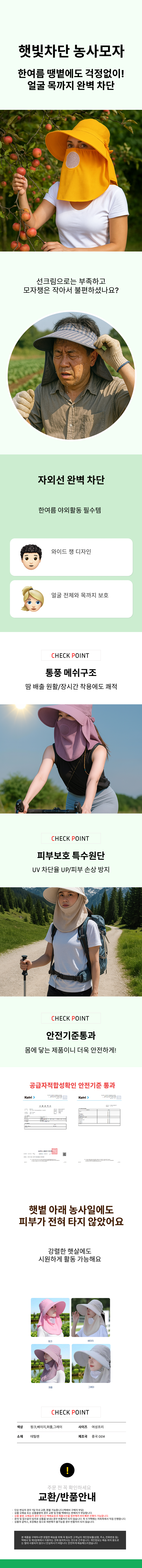 외출용 작업용 햇빛가리개 모자 자외선차단 썬캡