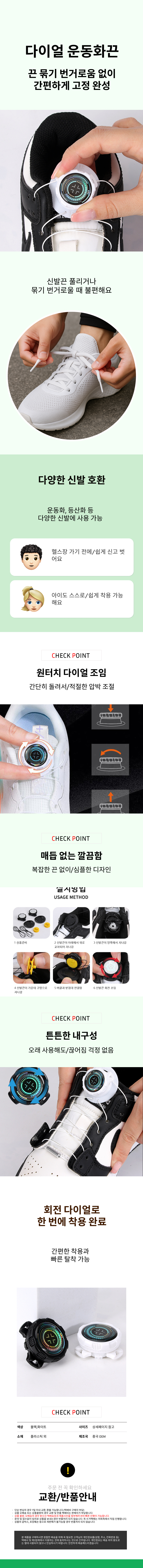 원터치 운동화끈 회전버클 다이얼 자동 신발끈 한쌍