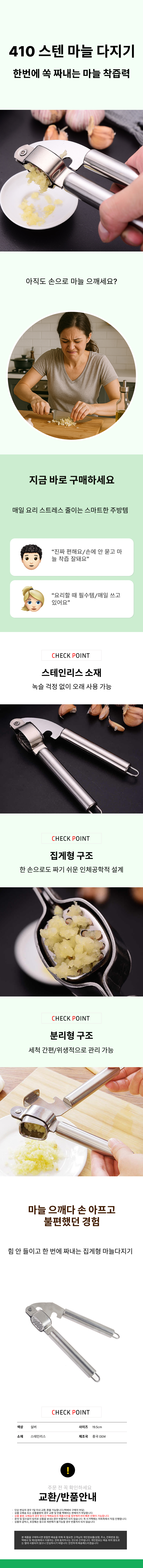 올스텐 집게형 마늘 으깨기 마늘다지기 갈릭프레스
