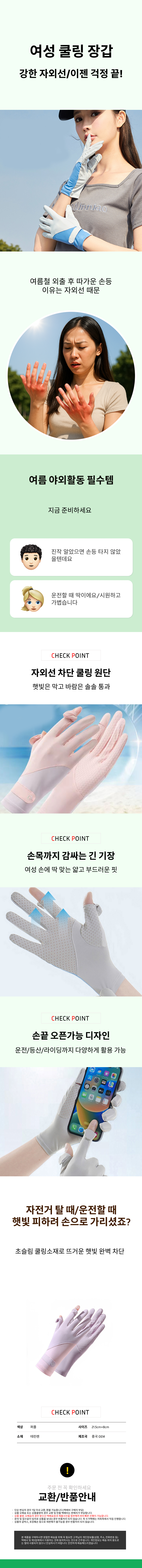여름용 자외선차단 쿨장갑 운전 골프 스마트폰 터치