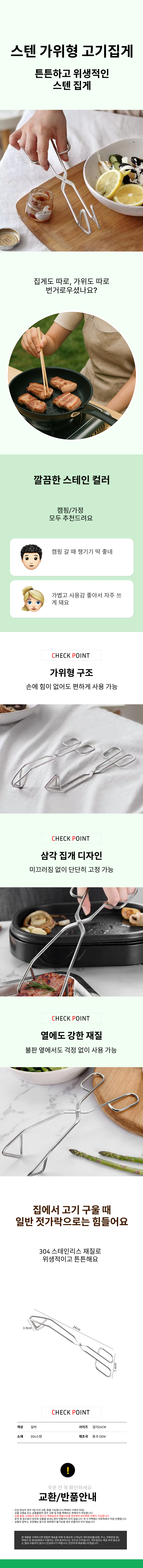 고기집게 삼각집게 캠핑집게 304 스텐 주방용 가위형