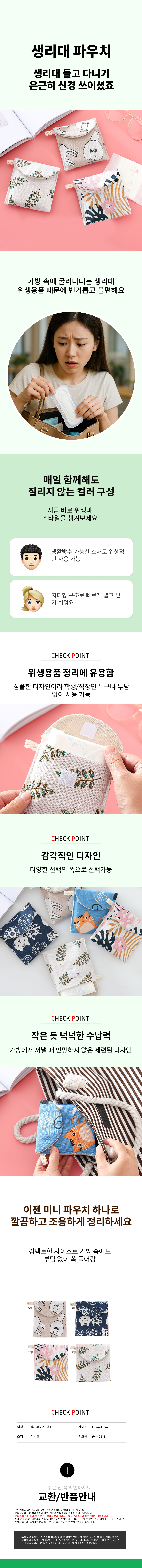 여행용 생리대 파우치 미니 지퍼 파우치 다용도 보관