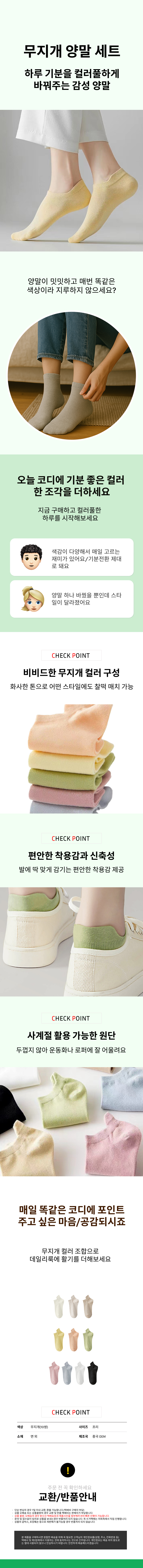여성 발목양말 무지개 단목 패션양말 10켤레세트