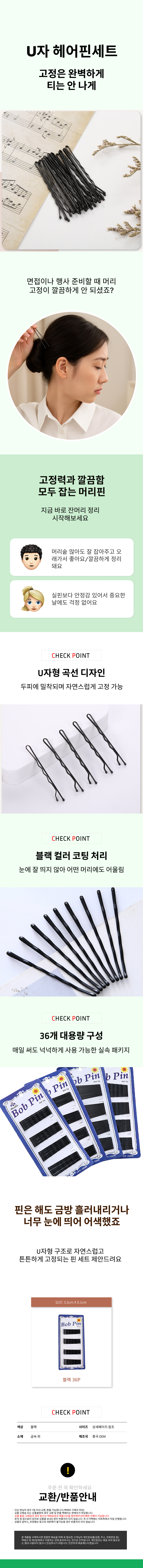 U핀 U자핀 유핀 실핀 웨딩 혼주 올림머리 고정 36p