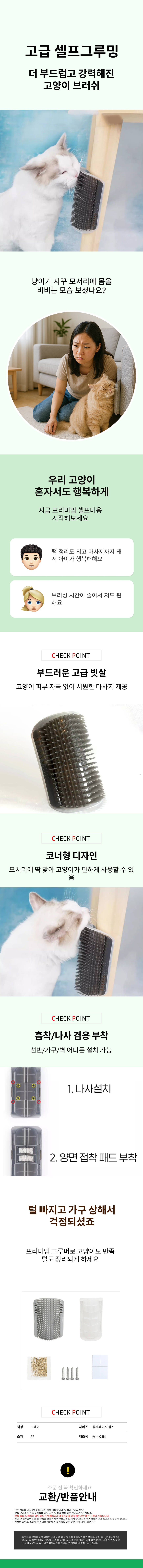 코너부착 고양이 셀프 털관리 빗질 스트레스 해소