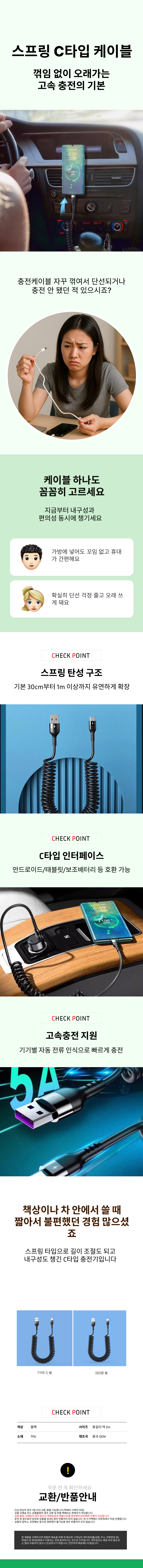 차량용 스프링 충전 케이블 코일형 C타입 고속충전