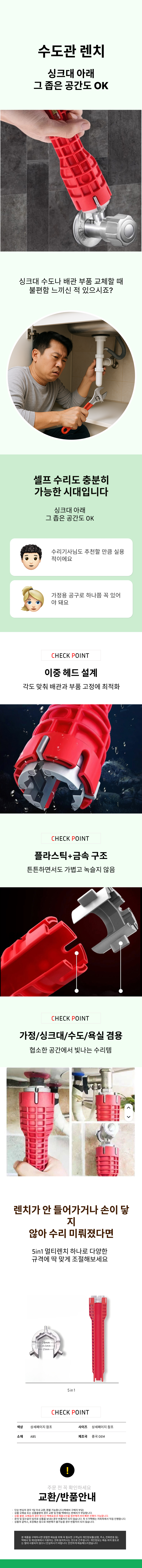 멀티 수도관 렌치 다용도 배관 수리툴 셀프수리