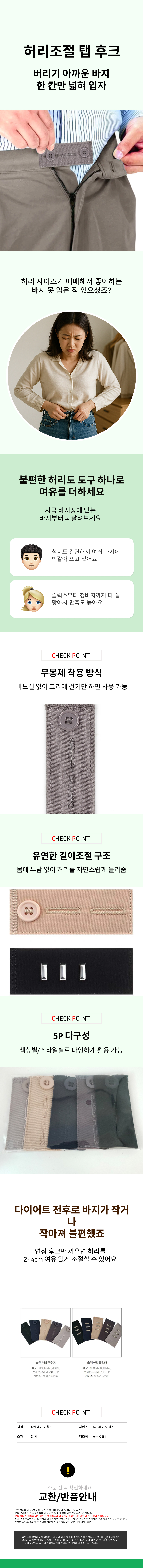 허리조절 바지 연장후크 청바지 슬랙스 확장 탭 5P