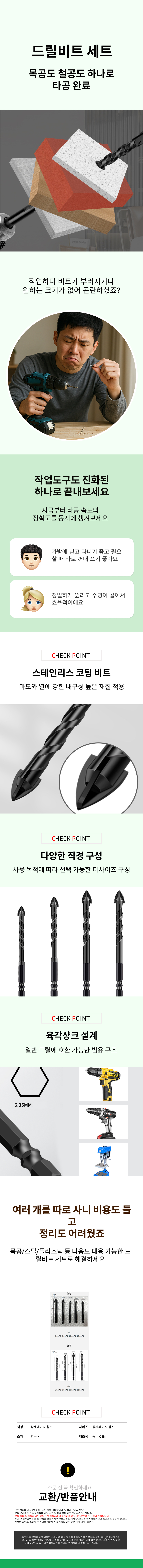 다목적 전동 드릴비트 세트 타공 목공 드릴팁