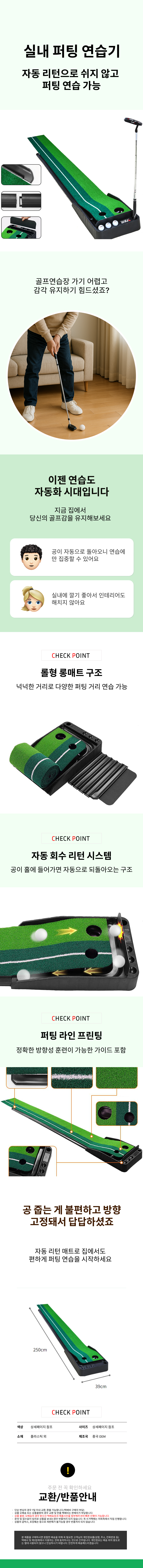 실내 퍼팅 연습기 자동리턴 골프 퍼팅매트 무소음