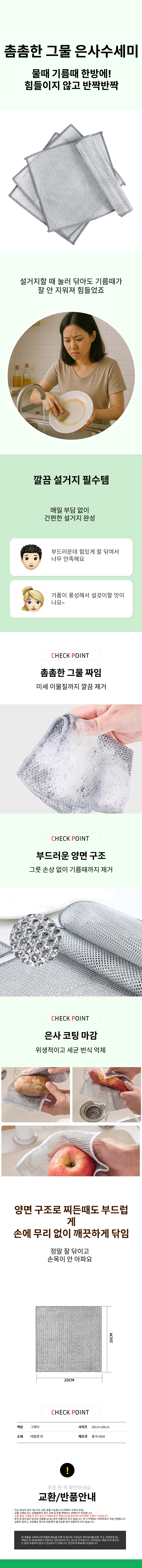 양면 아크릴니트 그물 은사 수세미 무기스 행주 20x20