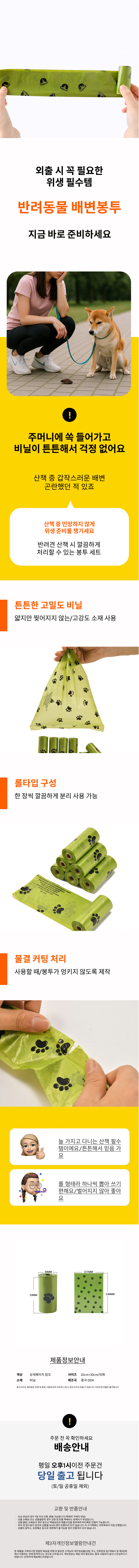 위생팩 봉투리필 대형견 캠핑용 튼튼한 롤비닐 롤봉투