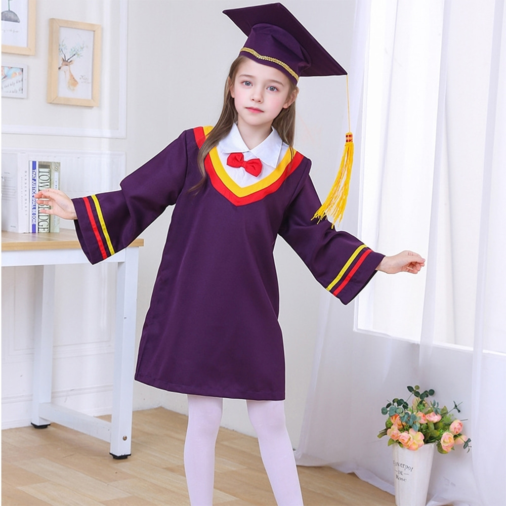 남녀공용 보라색 두줄라인 졸업사진 학사복 세트.