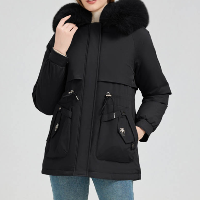안감 털가득 세련된 점퍼 퍼 후드 파카 허리라인 조절