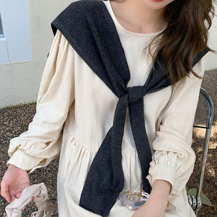 어부바니트 숄더 가디건 티나 셔츠에 레이어드