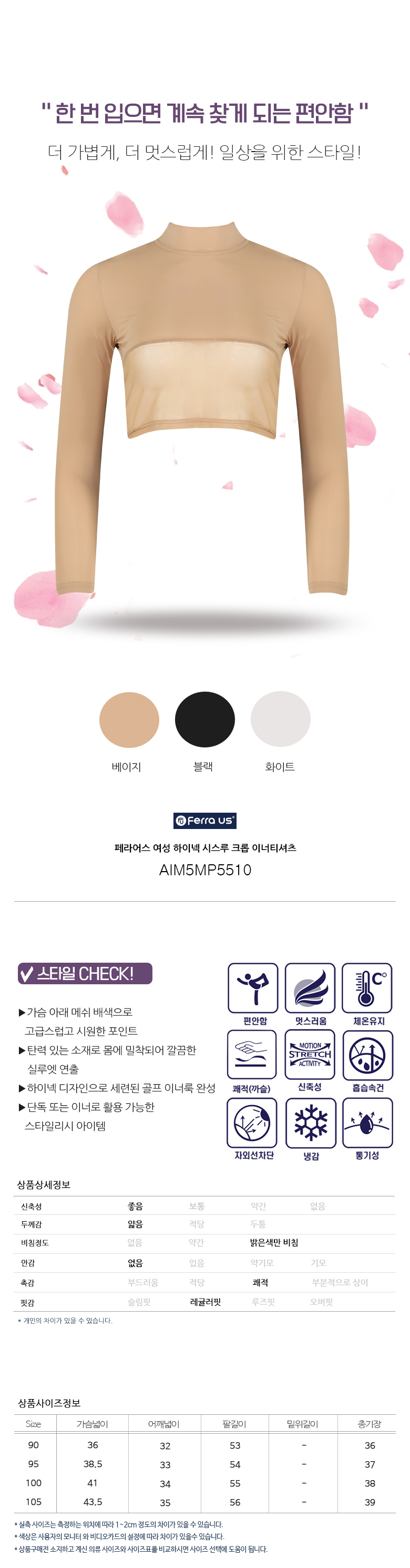 페라어스 여성 하이넥 시스루 크롭 이너티셔츠 AIM5MP5510
