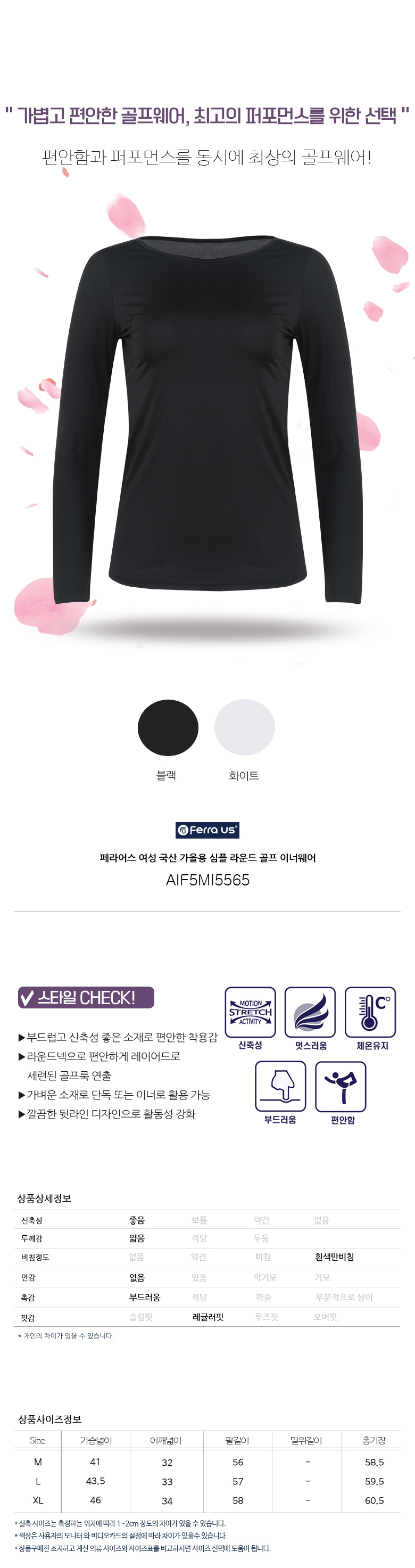 페라어스 여성 국산 가을용 심플 라운드 골프 이너웨어 AIF5MI5565