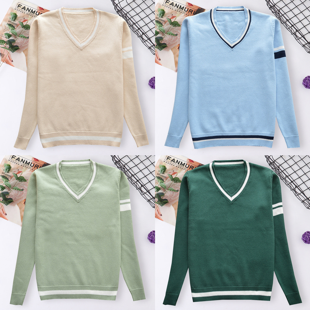 (대여)남녀공용 더블라인 브이넥 니트 스웨터 4컬러.