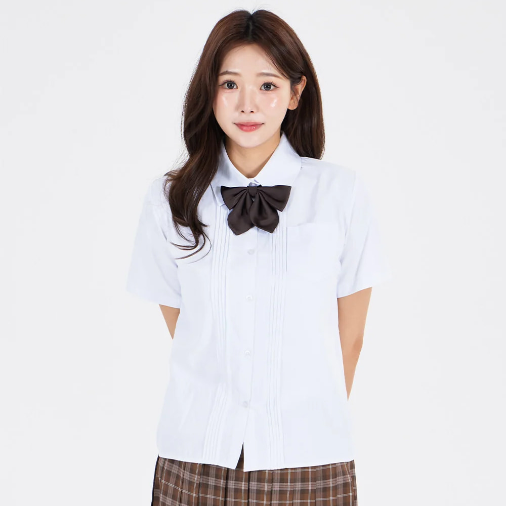 화이트 베이직 앞주름 각카라 반팔셔츠 교복 학생복.