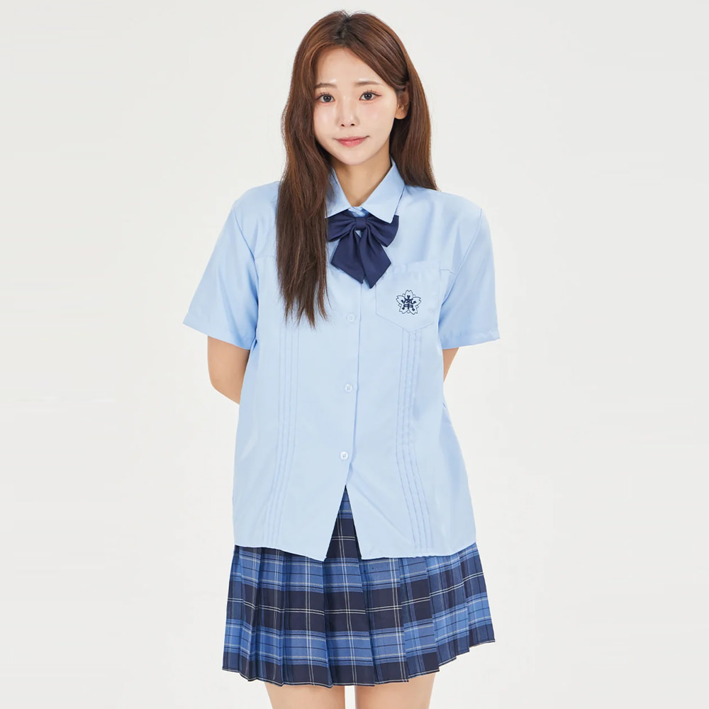 블루 포켓 여자 하복셔츠 교복 학생복.