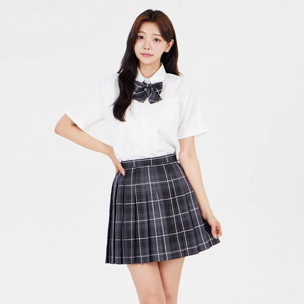 스모크그레이 격자 체크무늬 교복치마 (기장선택).