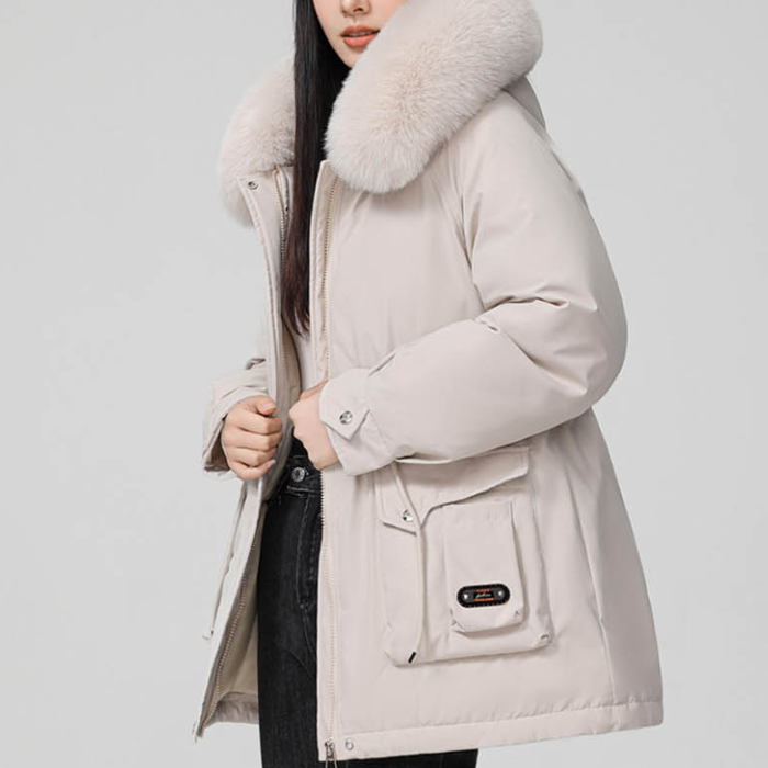 이중 지퍼 누빔 패딩 버튼 잠금 허리조절 여성 아우터