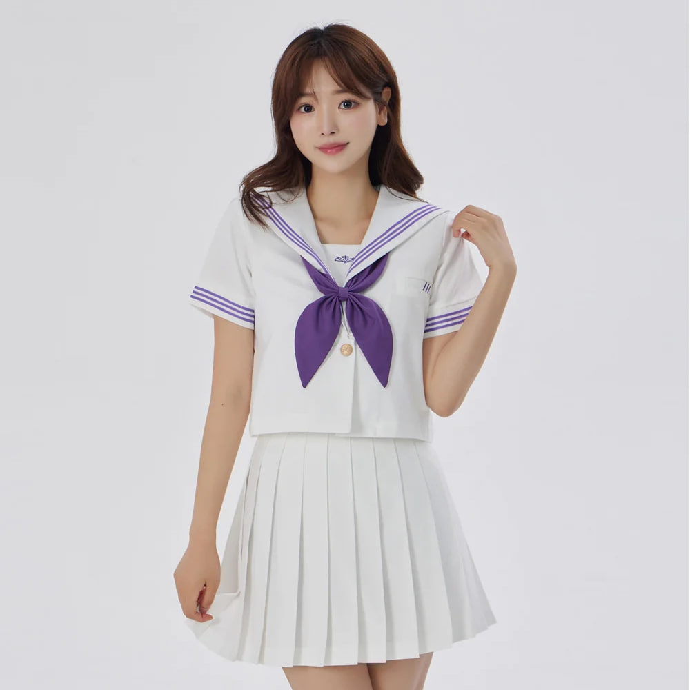 (대여)화이트퍼플 복고 유니폼 세라복 반팔 교복세트.