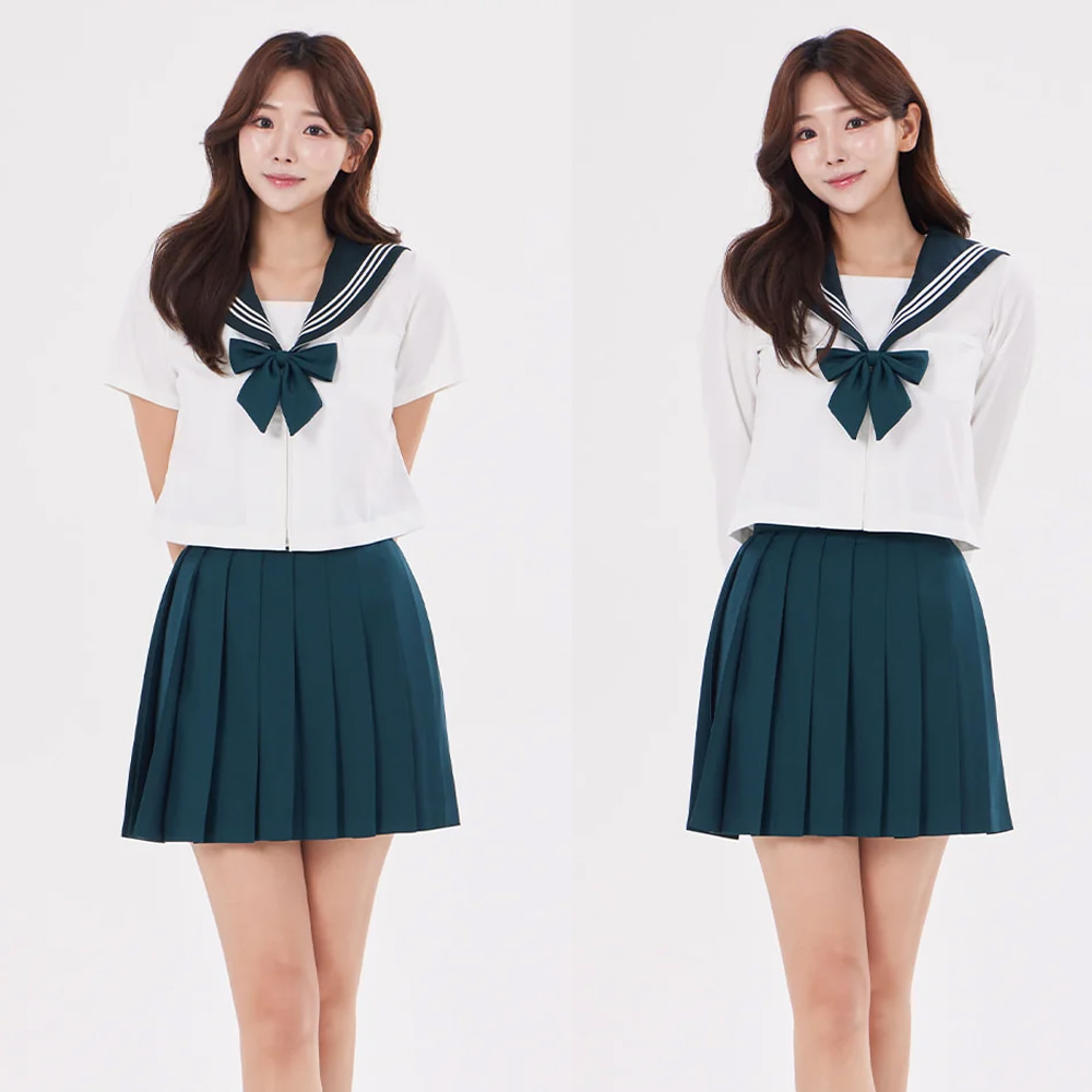 세줄라인 딥그린 마린 세라복 세트(반팔or긴팔) 교복.