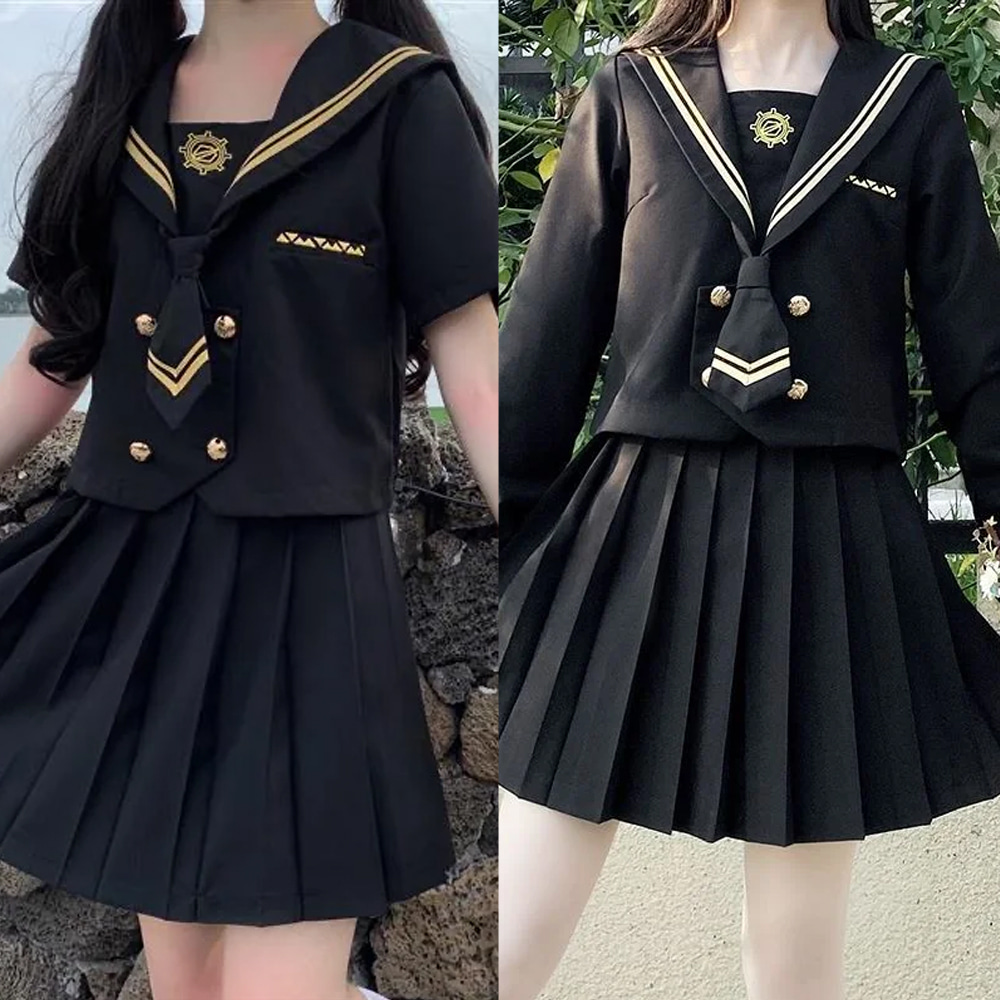 (반팔or긴팔)블랙 골드라인 세라복 세트 교복 학생복.