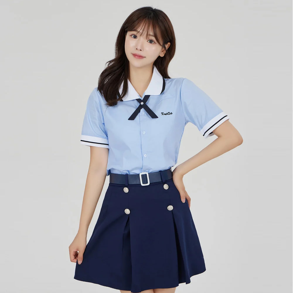 스카이블루 반팔셔츠 블라우스 4버튼 버클치마 세라복.