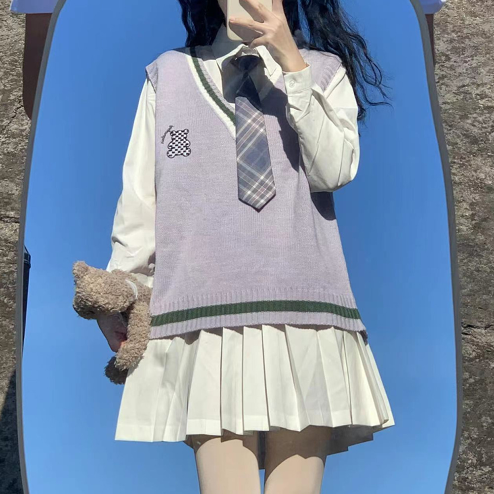 라이트퍼플 테디 긴팔셔츠 조끼 세라복 교복세트 교복.