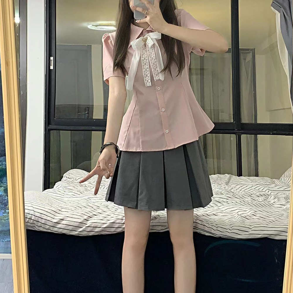 라이트핑크 어깨퍼프 반팔 블라우스 세라복 교복세트.